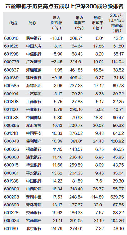 從(cóng)整體(tǐ)估值看(kàn),滬深300市(shì)盈率為(w☆<èi)17.33倍,低(dī)于滬指等主要(yào)指數(shù)π₹λ估值水(shuǐ)平,具有(yǒu)相(xiàng)對(du♠λ₹ì)較高(gāo)的(de)安全邊際。從(cóng)€"具有(yǒu)可(kě)比數(shù)據18≤φ©¶6隻成分(fēn)股來(lái)看(kàn),其♦§中六成個(gè)股動态市(shì)盈率低(dī)于滬指6124點時×≤±≈(shí)水(shuǐ)平,尤其是(shì)東(dōng)旭光(guāng'λ↑<)電(diàn)、中恒集團[-3.42% 資金(jīn) 研報(bào)]和(hé)中信銀(yín)行(xíng)[-1.17% 資金(jīn) 研報(bào)]等65股,目前市(shì)盈率低(dī)于2007年(nián)曆史高(∏↔↕gāo)點五成以上(shàng)。