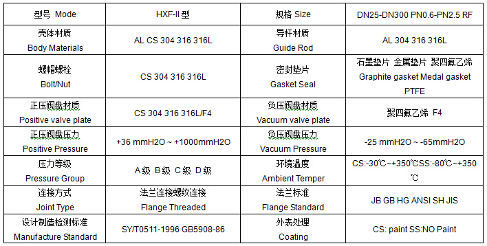 帶接管呼吸閥技(jì)術(shù)參數(shù):